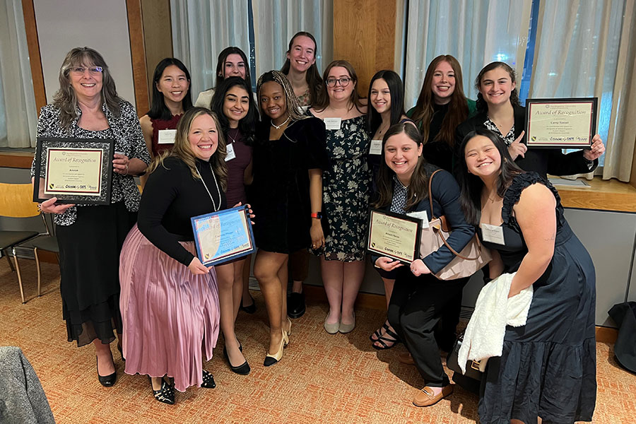 Students from SWE and an AMETEK SFMS representative celebrate achievement at their annual banquet Colleagues at SFMS have worked alongside the Northeastern University SWE chapter to help women excel through building relevant skillsets, giving them exposure to a vast degree of engineering roles, arranging tours of our manufacturing facility, and mentoring students in the program.